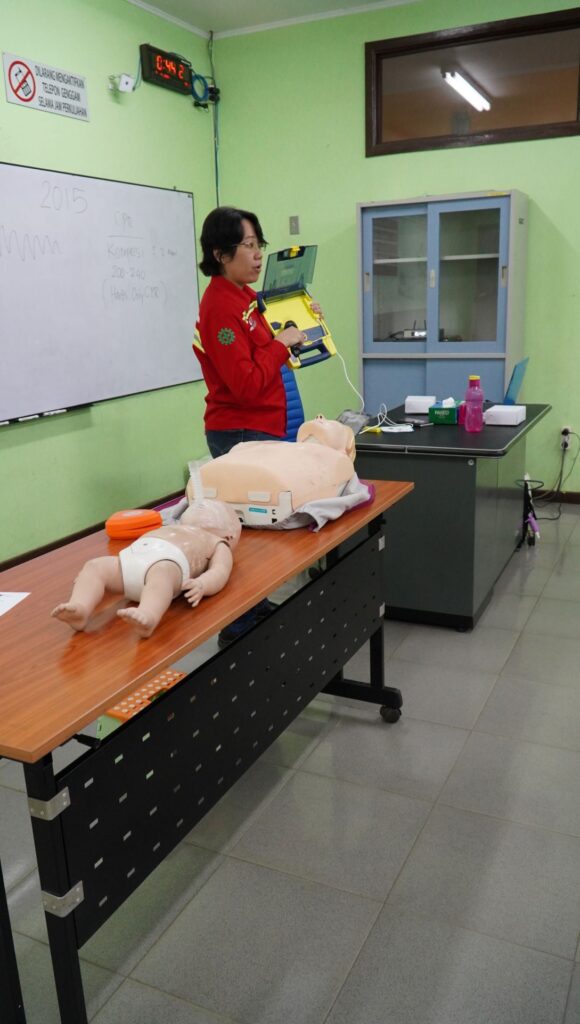 Praktek langsung yang berupa simulasi keadaan darurat kepada manekin dipraktekkan secara intensif dan didampingi langsung oleh pemateri. Selain itu untuk menguji apakah paserta paham dengan pelatihan diberikan, tes secara praktek dan tertulis diberikan kepada peserta. Pelatihan yang berlangsung dari pukul 8 pagi hingga pukul 5 sore itu berlangsung dengan penuh antusiasme dari para peserta.