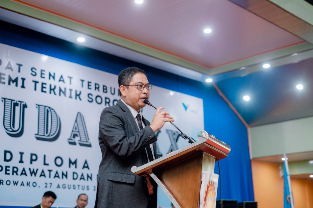 Sambutan terakhir dibawakan oleh Kepala Lembaga Layanan Perguruan Tinggi (LLDIKTI) wilayah IX Sulawesi Selatan dan Sulawesi Tenggara, Bapak Dr. Drs. Andi Lukman, M.Si. Dalam sambutannya beliau salaut dengan ATS yang mempunyai prestasi yang luar biasa ditandai dengan masa tunggu kerja alumni bahkan minus. Beliau juga memaparkan bahwa sistem Merdeka Belajar Kampus Merdeka bahwa alumni perguruan tinggi memiliki 3 kemungkinan yaitu cepat kerja, melanjutkan pendidikan atau bisa saja berwirausaha. Beliau juga menantang ATS untuk menambah lagi jam praktek mahasiswa 80% bahkan kalau bisa dilakukan diluar kampus. Mahasiswa itu harus diperbanyak untuk merasakan bagaimana kehidupan nyata dunia industri agar ketika mahasiswa menjadi alumni siap menghadapi gelombang tersebut. Beliau juga menambahkan agar perguruan tinggi memberikan dan menyiapkan wadah agar Merdeka Belajar dapat diterapkan dengan sepenuhnya. Dan buat mahasiswa yang akan lulus jangan pernah berhenti belajar, buat orang tua jangan pernah berhenti berdoa unutk anak kita, mahasiswa ku semua yang kita capai semua karena orang tua, jangan pernah kita jauh dari orang tua.