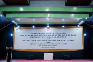 SK perubahan bentuk dibacakan langsung oleh Bapak Andi Wali Takhri, yang menyampaikan bahwa terhitung sejak 20 Mei 2025, Akademi Teknik Soroako resmi beralih status menjadi Politeknik Sorowako. Institusi ini kini menaungi tiga program studi: