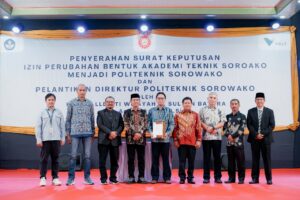 Sorowako, 17 Juni 2025 – Sebuah tonggak sejarah baru tercatat dalam dunia pendidikan vokasi di Indonesia Timur. Akademi Teknik Soroako (ATS) secara resmi telah berubah bentuk menjadi Politeknik Sorowako, setelah menerima Surat Keputusan (SK) dari Kementerian Pendidikan, Kebudayaan, Riset, dan Teknologi Republik Indonesia. Serah terima SK dilaksanakan secara simbolis oleh LLDIKTI Wilayah IX Sultan Batara kepada Ketua Yayasan Pendidikan Sorowako, bertempat di Gedung Ontaeluwu, Sorowako.